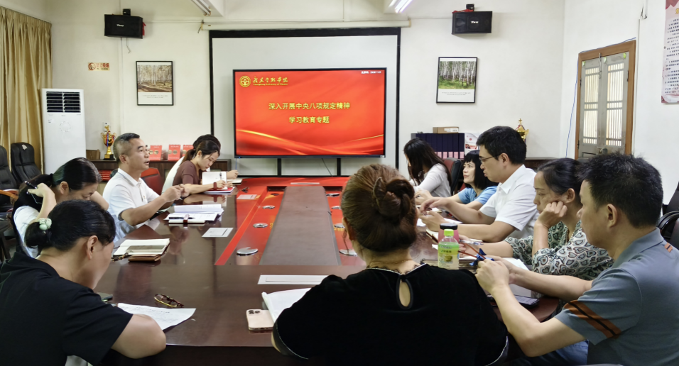 专题学习会还系统总结永利集团3044am从今年3月份以来学习教育开展情况,巩固拓展作风建设成果。会上,学院党委书记黄庆雄代表学院党委通报《深入贯彻中央八项规定精神学习教育开展情况总结报告》。他从三个方面通报学院开展学习教育以来的工作成效:(一)深化理论武装,筑牢思想根基。自今年3月学习教育开展以来,学院党委严格落实“学查改”一体推进要求,组织学院党委理论学习中心组专题学习10次,参加学校中层干部专题读书班,主办“扬清风正气·守廉洁初心”中央八项规定精神主题书画展,以“党纪铭心砺初心,博学笃行谱华章”为主题举办第八届“博雅杯”知识竞赛,实现党员干部学习全覆盖。通过“三会一课”、主题党日等载体,组织学院“双百行动”“百千万工程”师生志愿服务队分别前往大埔县、广宁南街街道护国社区开展社会实践活动,用青春力量赋能助力文化传承与乡村振兴贡献力量。深入开展《中央八项规定及其实施细则》专题研讨,组织党员干部赴廉政教育基地开展沉浸式教学3次,推动作风建设理论入脑入心。形成学院“党委牵头抓总、支部具体落实、党员全员参与”的工作格局。(二)坚持问题导向,狠抓整改落实。对照问题导向问题,学院党委牵头查摆梳理出“毕业论文审核工作流程繁琐”等事项,全面查摆“四风”突出问题,重点纠治“政绩观偏差”“形式主义”“违规吃喝”等顽疾,建立问题清单,深挖思想根源,对学习教育学院班子集体问题清单台账3条进行落实整改、对班子成员个人查摆的问题清单7条落实个人整改,此外学院党委对各党支部的54名教工党员和29名学生党员查摆的83条问题进行审核把关、纠偏导正,切实解决师生急难愁盼问题。(三)强化警示教育,增强廉洁意识。组织党员干部观看警示教育片,通过剖析反面典型案例,深刻揭示违规违纪行为的原因和危害,以此教育引导党员干部自觉遵守中央八项规定精神,筑牢廉洁自律的思想防线。6月5日,学院党委组织召开全院教工党员深入学习贯彻中央八项规定精神学习教育会。会上,学院党委书记领学第一议题“党的十八大以来深入贯彻中央八项规定精神的成效和经验”,并结合学习教育开展以来的工作实际,向全体党员系统解读中央八项规定出台的背景、核心要求和实践意义。同时,结合违反中央八项规定精神的典型案例,从师德师风学术道德、教学纪律、服务意识、工作态度、举止言行以及学院25届毕业生就业落实等各个方面,强调学院全体党员教师要深刻领会中央八项规定精神的实质,坚定以德立身、以德施教的信念,坚守师德底线的决心,筑牢拒腐防变的思想防线,切实改进工作作风,提高工作效率和服务质量,推动学院各项工作高质量发展。