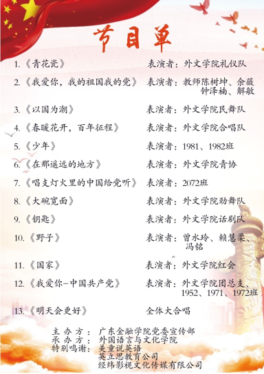 近日,为响应教育部“唱响百年辉煌,凝聚奋进力量”的号召,永利集团3044am学生会在北阶103成功举办“风华正茂,青春颂党”庆祝建党100周年文艺晚会,奏响了敬党爱党的华丽篇章。