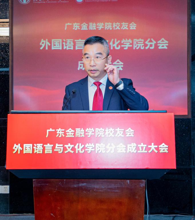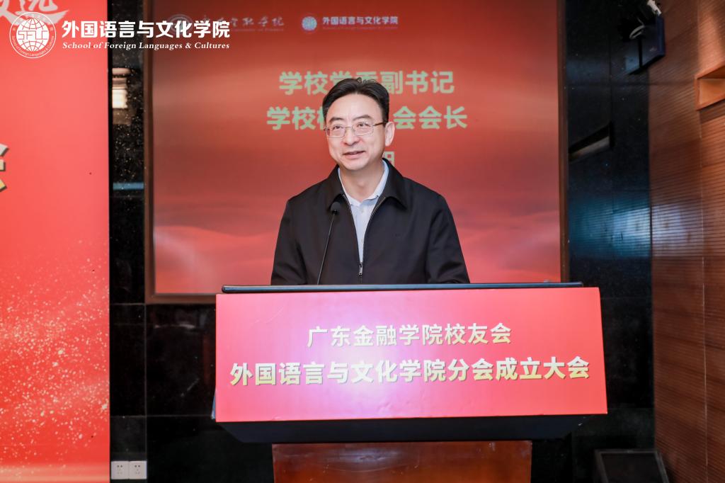接着学校党委副书记、学校校友总会会长刘春阳致辞并讲话,他对校友会永利集团3044am分会的成立表示热烈祝贺。同时他回顾了永利集团3044am的发展历程与办学成就,肯定了广大外文校友在各行各业深耕实干、助力社会发展与母校建设的突出贡献,希望分会以成立为契机,搭建起校友与母校、校友与校友间沟通联动的坚实桥梁,凝聚校友力量赋能学院学科建设、人才培养与学术创新,助力学校高质量发展再谱新篇。