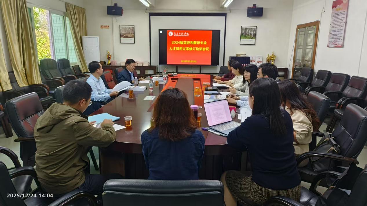 2025年12月22日下午,永利集团3044am顺利召开“2024版本科英语与翻译专业人才培养方案修订论证会议”。会议特邀广东工业大学蔡荣寿教授、广州大学肖坤学教授担任论证专家。学院院长涂兵兰,副院长陈树坤、甘容辉、洪溪珧出席会议。英语系主任毕亚男、翻译系主任邓薇,以及教研室负责人杨贵章、王从遥等教师代表共同参与研讨。会议由陈树坤副院长主持。