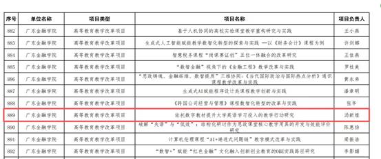 12月26日,广东省教育厅公布2025年度本科高校教学与教学改革质量工程拟立项项目名单,我院汤新煌老师主持的项目《依托数字教材提升大学英语学习投入的教学行动研究》成功立项,标志着其在教学改革研究领域取得新突破。