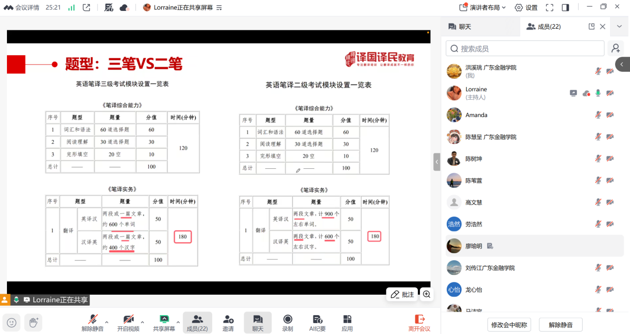 11月18日周二下午16:00,我院联合译国译民集团为2025级翻译专业硕士研究生订制开办的CATTI(全国翻译专业资格考试)备考培训班开班仪式如期在线举行。CATTI是一项国家级翻译专业资格(水平)认证,是唯一纳入中国国家职业资格制度的语言类考试。